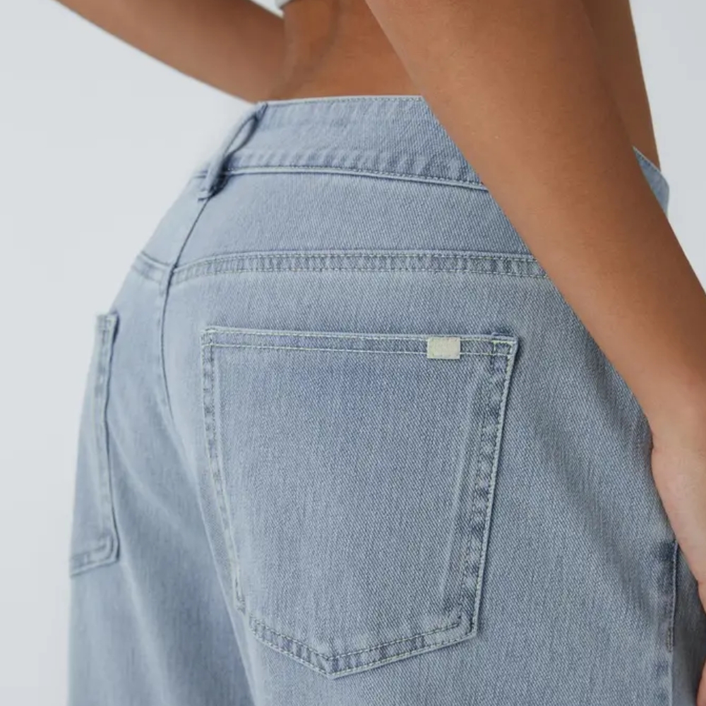The material adapts to daily activity without losing structure. It maintains form after repeated use when proper care instructions are followed. The stretch performance complements the wide fit design and low rise profile.