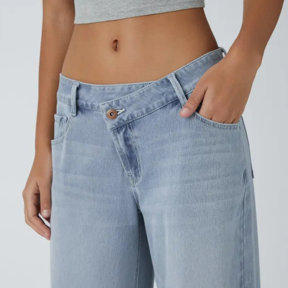 The Low Rise Baggy Wide Fit Denim Jeans With Zipper For Women bring a modern update to everyday denim styling. Designed with an asymmetric layout and zipper pocket detail, this pair stands out while remaining practical for daily routines. The structure focuses on movement and street inspired design. It works well for informal gatherings, travel plans, and casual schedules.