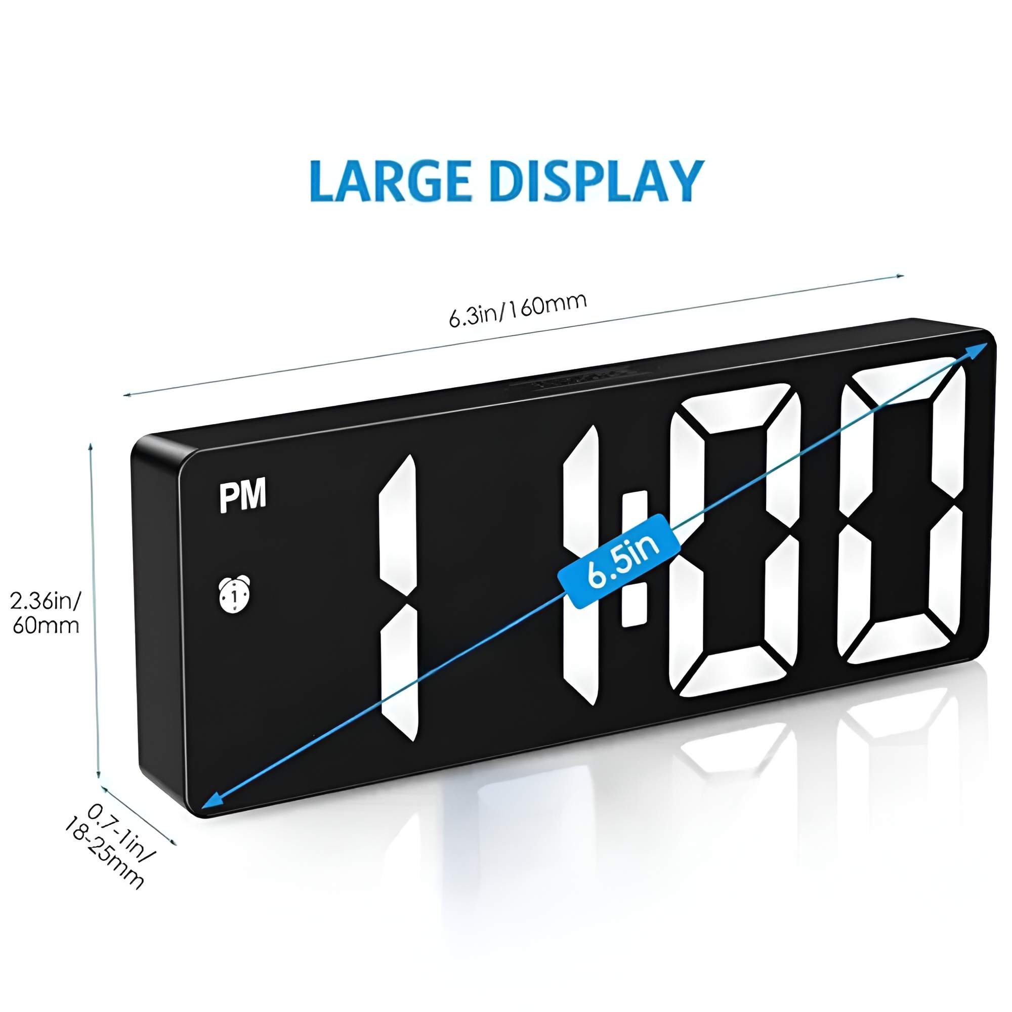 The Large Display Clock format improves readability. Its 6.3 inch LED screen presents bold digits that stand out clearly. Even when positioned several feet away, the numbers remain sharp and legible. This makes it suitable for study areas, office desks, and shared rooms.